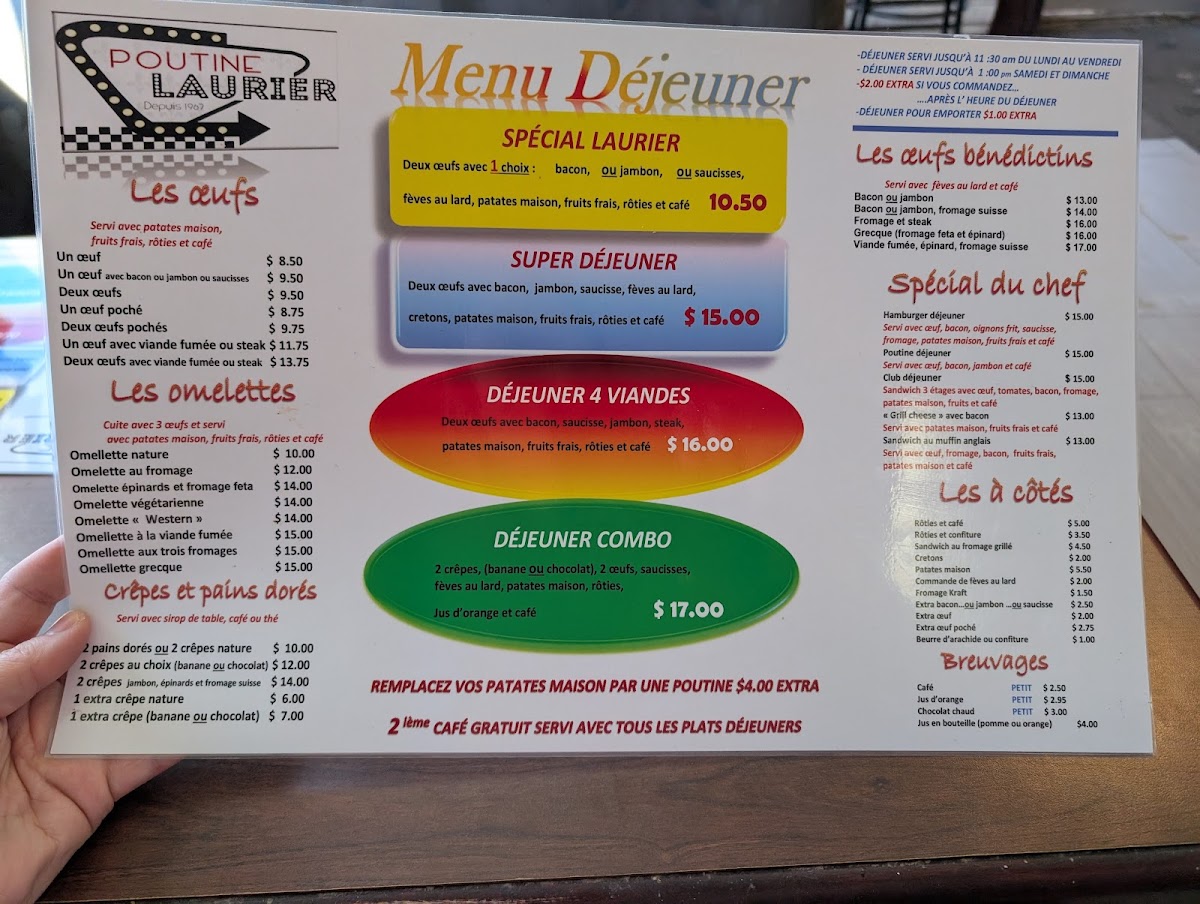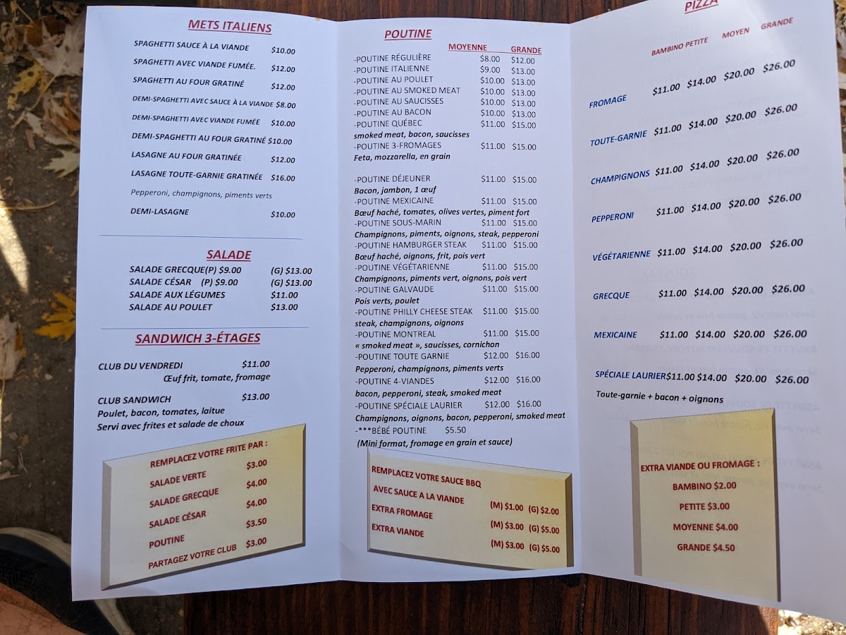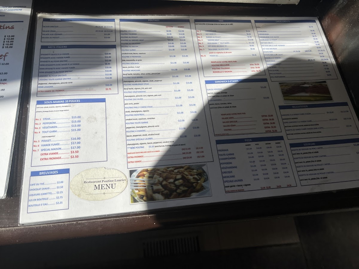 The menu at Poutine Laurier Restaurant offers a straightforward selection of comforting, casual dishes that fit perfectly into any time of day. From breakfast options like the crepe with ham, spinach, and Swiss cheese to heartier fast food staples such as burgers and their signature poutines, the menu balances familiar flavors with generous portions.